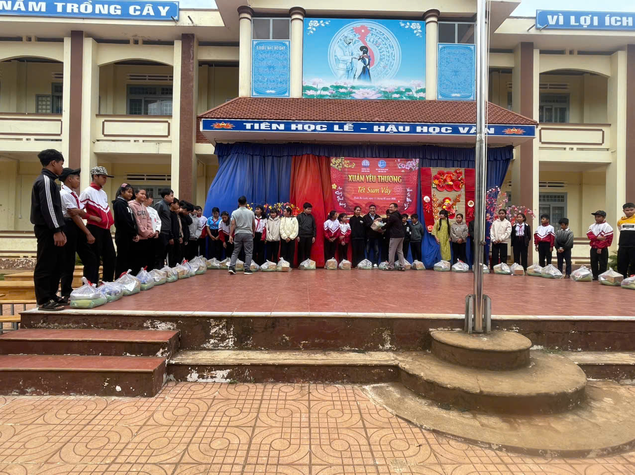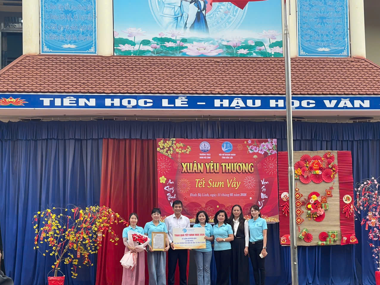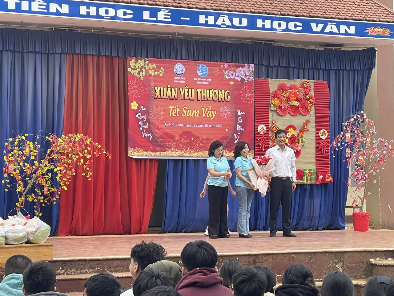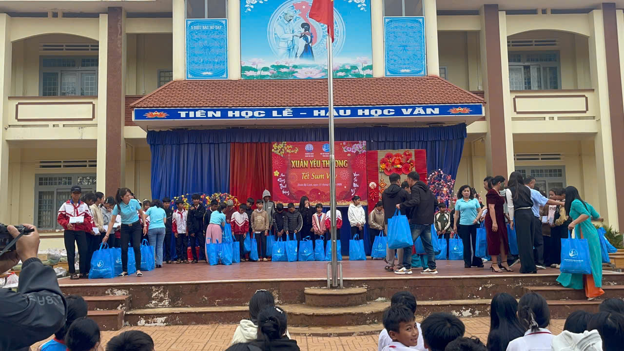 Trong không khí rộn ràng của những ngày giáp Tết Nguyên Đán Bính Ngọ 2026, ngày 11/02/2026 tập thể viên chức quản lý, giáo viên và học sinh Trường THCS Đinh Bộ Lĩnh đã long trọng tổ chức chương trình Xuân yêu thương – Tết sum vầy nhằm chia sẻ, động viên những khó khăn của các em học sinh trong dịp Tết đến Xuân về, góp yêu thương, lan tỏa hạnh phúc.