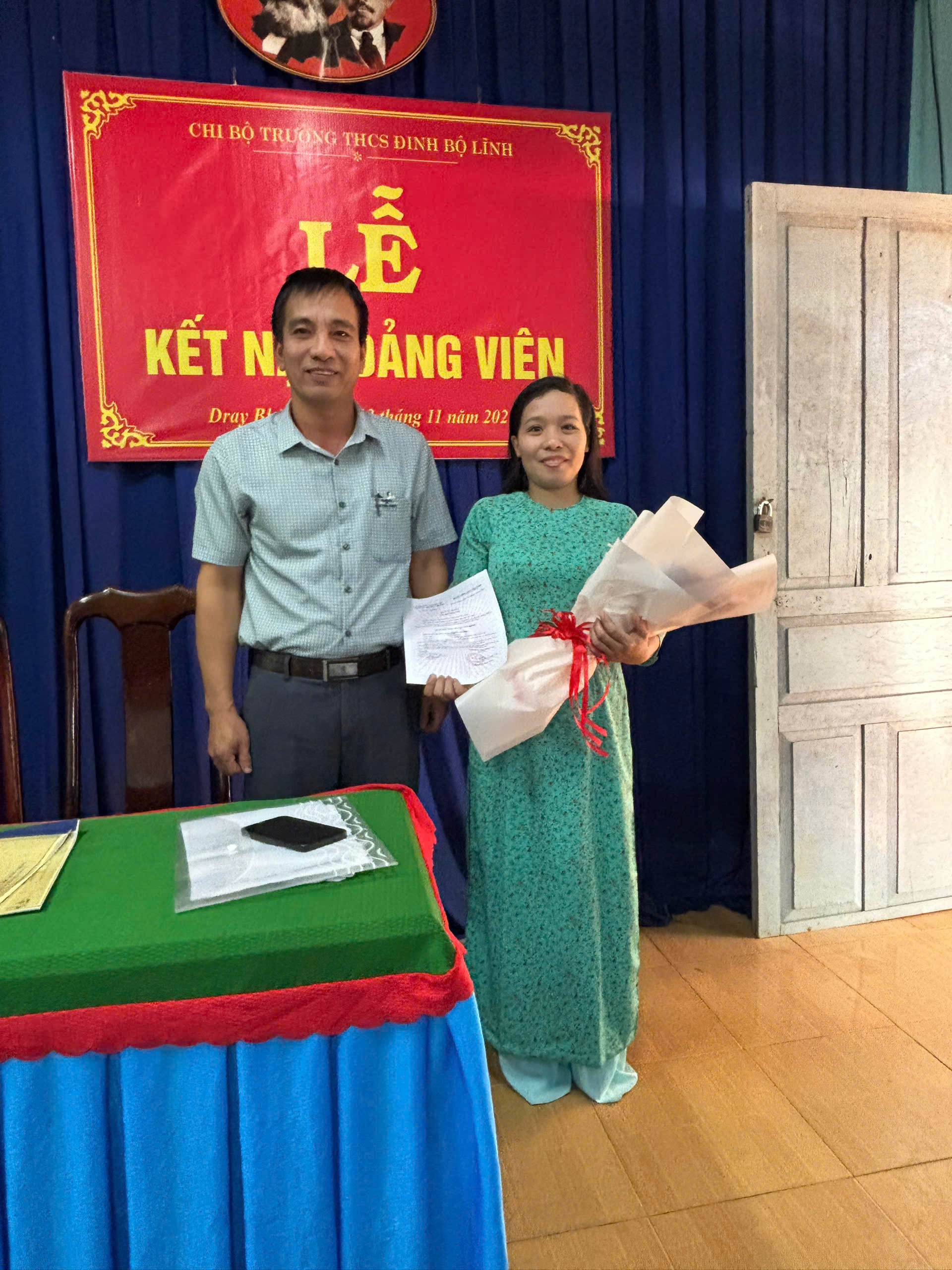 Bồi dưỡng, kết nạp đảng viên mới là nhiệm vụ thường xuyên, có ý nghĩa quan trọng trong công tác xây dựng Đảng, góp phần phát triển, nâng cao chất lượng và sức chiến đấu của tổ chức cơ sở Đảng nói chung và các cá nhân Đảng viên nói riêng. Với ý nghĩa đó, được sự giúp đỡ của chi bộ trường THCS Đinh Bộ Lĩnh cùng với sự nỗ lực, phấn đấu của bản thân, đồng chí Nguyễn Thị Thùy được kết nạp vào Đảng Cộng sản Việt Nam vào chiều ngày 13/11/2025 vừa qua.